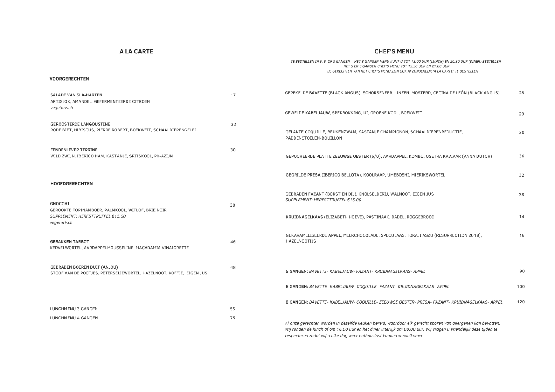 Note: Na uw lunch of diner kunt u uiteraard nog van een kopje koffie / drankje genieten voordat wij gaan afronden. Voor de lunch is dat uiterlijk om 16.00 uur en diner 00.00 uur. Wij vragen u vriendelijk deze tijden te respecteren, zodat wij u elke dag weer enthousiast kunnen verwelkomen.