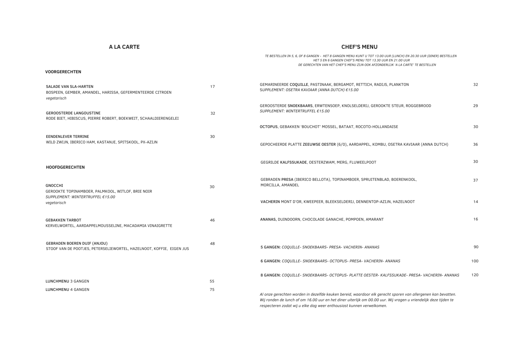 Onze Menukaart